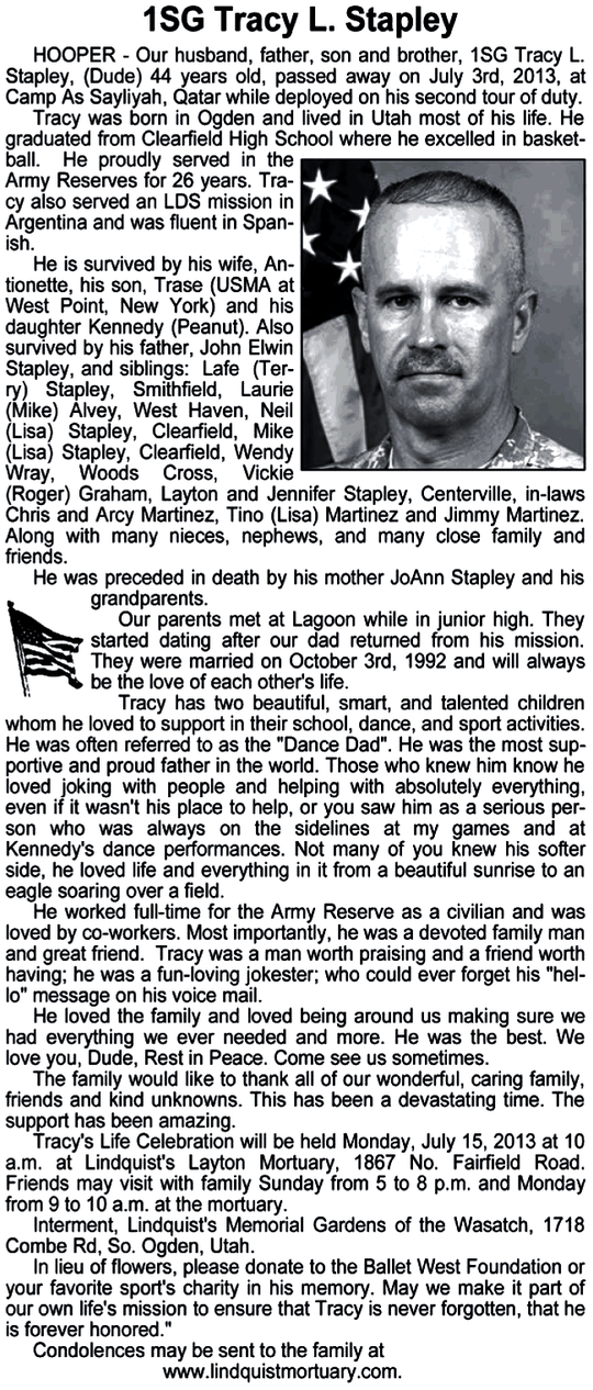 1st Sgt Tracy L. Stapley - Class Of 1986